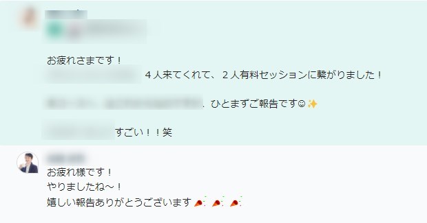 ⇒最初は、お金のブロックもありましたが、商品サービスの作り込み、伝え方などを前日に調整しながら成果に結びつくことが出来ました。