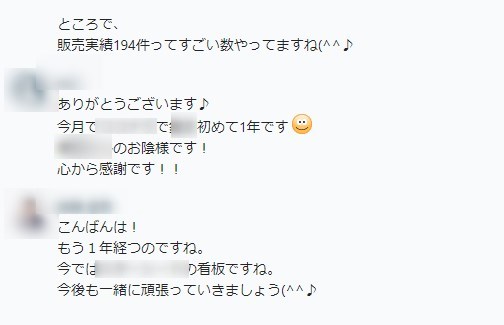 1年目で販売実績194件達成しました!もちろん、講座の受講料は、回収できています。最初の1年目は、自力でやっていたため、実績がありませんでしたが、大きく成長できました!